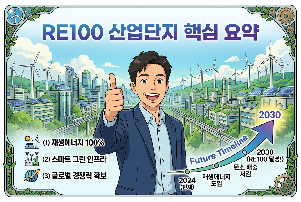 본 글의 RE100 산업단지 관련 정보는 2026년 4월 기준으로 작성되었으며, 특별법 제정 및 정책 변경에 따라 세부 내용이 달라질 수 있습니다. 정확한 입주 조건과 세제혜택은 산업통상자원부 및 관할 기관에 직접 확인하시기 바랍니다. 본 포스팅은 AI를 활용하여 작성하였습니다.