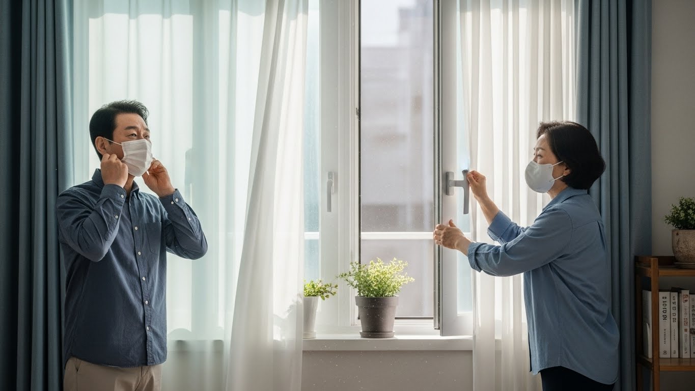 에어로졸 감염을 막으려면 실내 환기가 가장 중요합니다. 가능하면 자주 환기하고, 공기청정기 사용, 실내 습도 관리(50~60%)를 통해 바이러스 전파를 줄일 수 있습니다.