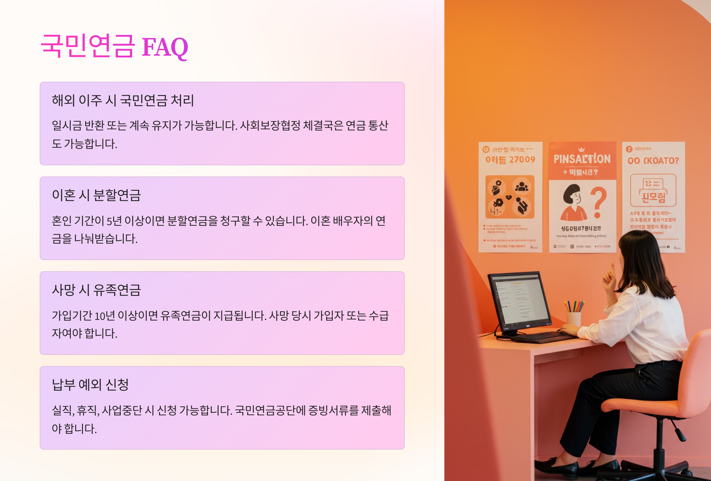 국민연금을 더 많이 받기 위해서는 가입 기간을 최대한 늘리고, 추가 납입을 고려하며, 연기연금을 활용하는 것이 핵심이에요. 그렇다면 국민연금과 관련해 사람들이 가장 많이 궁금해하는 질문들은 무엇일까요? 다음 섹션에서 자주 묻는 질문들을 정리해볼게요.
